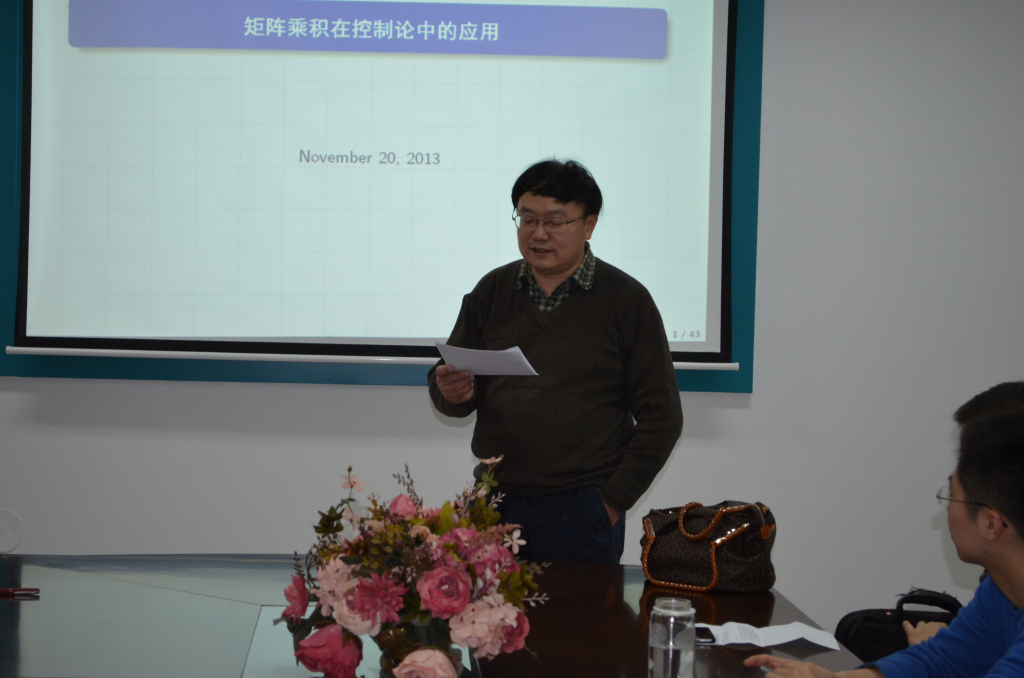 2014年11月11日上午 8:30-9:30,山东大学数学学院冯俊娥教授在格物楼503做了题为《各种矩阵乘积在控制理论中的应用》的学术报告,报告由田波平教授主持,数学系十余位师生听取了报告并进行了热烈的讨论。