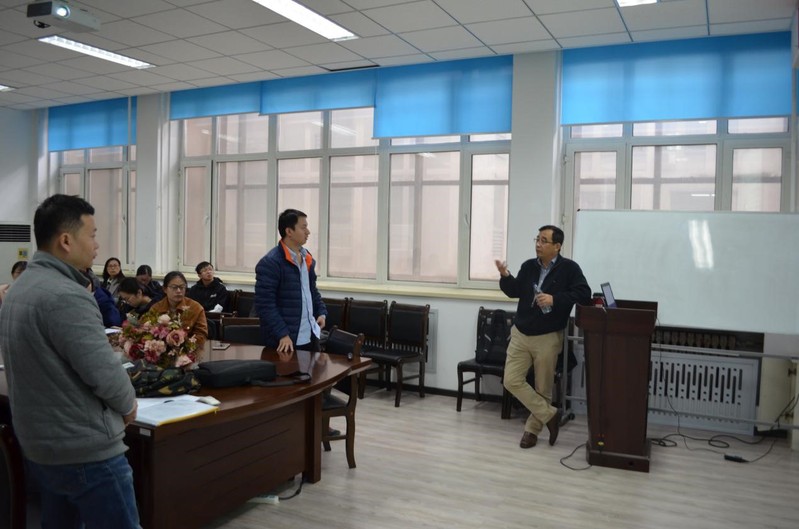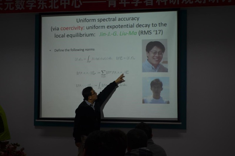 10月16日,金石教授在研讨会上做了主题为“多尺度动力学方程的不确定性量化”的报告。在报告中,金石教授详细的介绍了动力学方程的来源、解决多尺度问题的渐近方法,以及时下最热门的不确定性量化在多尺度动力学方程中的应用。金石教授的报告深入浅出,并且在报告的最后,他向数学系的师生推荐研究多尺度动力学方程的不确定性量化问题,因为这是一个非常新的学术方向,正逐渐成为研究的热门。