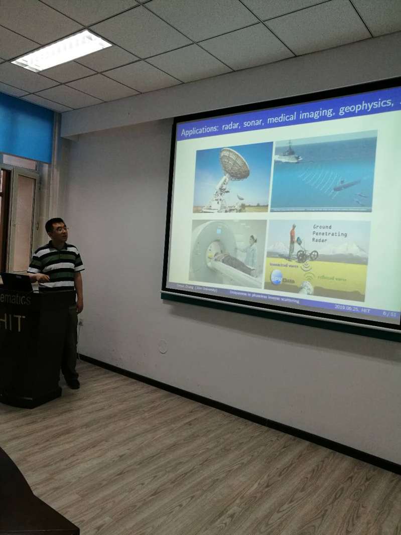 应数学学院郭玉坤副教授的邀请,吉林大学数学学院张德悦教授于2019年6月25日至27日到我校进行学术访问。张德悦教授于25日上午10:30-11:30在格物楼503报告厅做了一场学术讲座,报告内容为无相位数据声波反散射问题的唯一性理论。报告由郭玉坤副教授主持,数学学院相关方向的师生参加了报告会并与张德悦教授进行了热烈的学术交流与讨论。