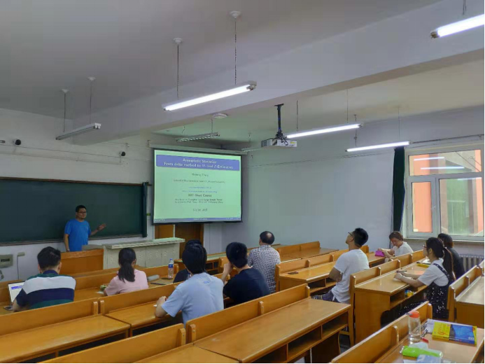 第二场报告时间为7月16日上午8:30-12:00,地点为诚意楼202室,报告主题为“Kernel regression and optimal bandwith”,主要介绍了核回归方法的背景,直观解释,和其渐近正态分布,并进一步阐述了最优窗宽的选择。