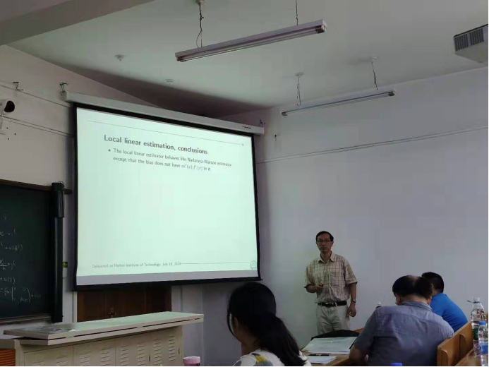 受国家外专局(国家重大科技专项外国人才引进计划,项目编码:110000202120180027)和哈工大国际合作部资助,应数学学院田波平教授邀请,清华大学统计学研究中心杨立坚教授于2019年7月15日至7月19日来哈工大数学学院进行了成功的学术访问,围绕非参数统计、核密度估计(Kernel)与局部多项式密度估计开展系列学术报告和学术讲座并与我院师生进行了多次学术交流活动。
