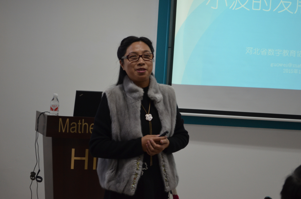 2015年12月18日 上午11:00 ,河北师范大学郭蔚教授在数学系会议室(格物楼503)做了题为《小波分析的发展及其应用》的学术报告,报告由薛小平教授主持,数学系50余位师生听取了报告并进行了热烈的讨论。