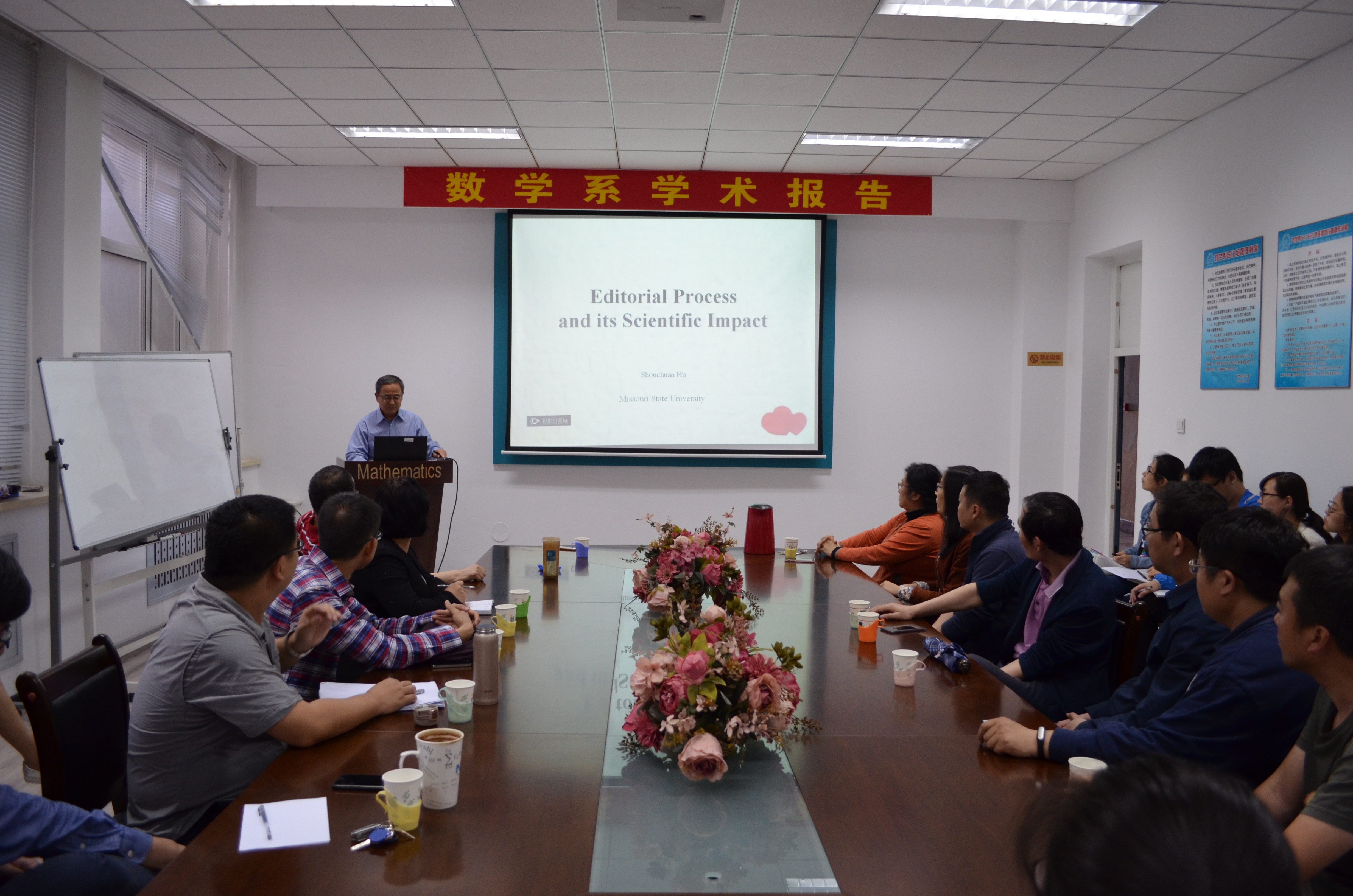 应哈尔滨工业大学数学系吴勃英教授邀请,2017年6月7日 下午14:00-15:30在格物楼503会议室,美国密苏里州立大学胡守川教授来访数学系并做学术报告。报告题目:The Editorial Process and Journal Publication,报告由王明新教授主持,数学系六十余位师生听取了报告,并进行了热烈的讨论。
